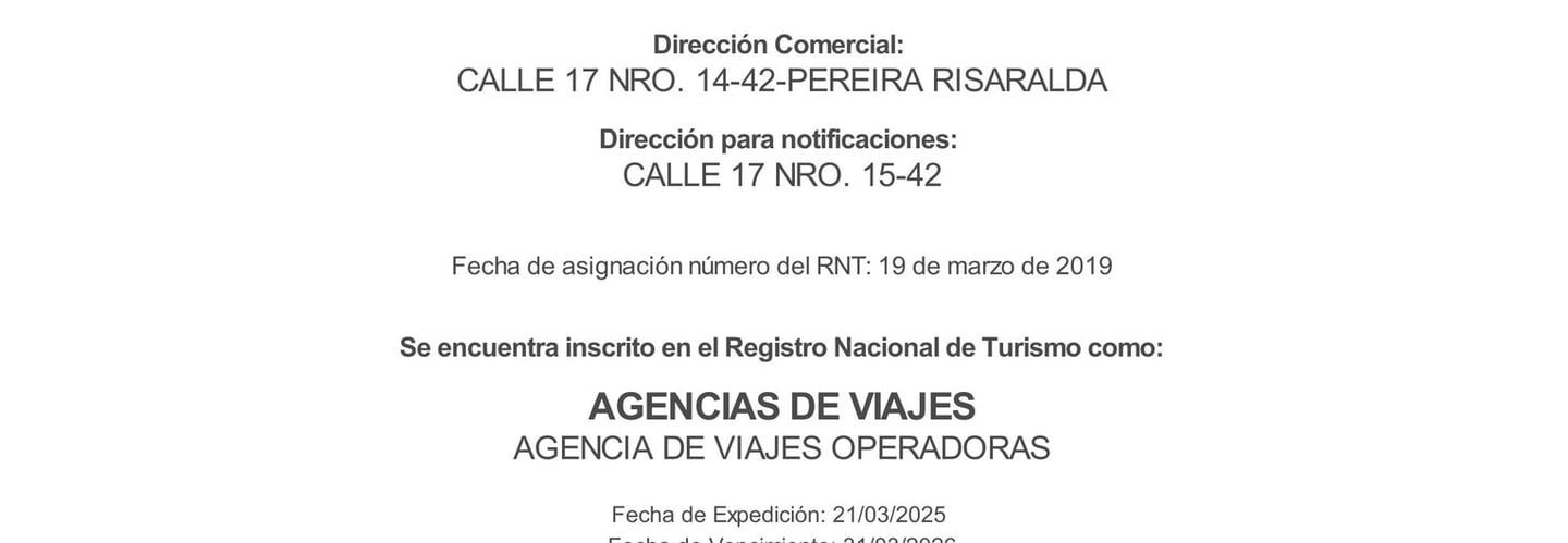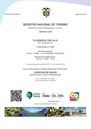 Certificados y autorizados para ofrecer planes turísticos en Colombia.